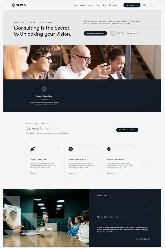 Nusa is a beautifully handcrafted, pixel perfect business consulting WordPress Theme based on Elementor Page Builder & designed with great attention to details, flexibility and performance. Nusa has stunning styles and elements to help you make a professional website in no time.